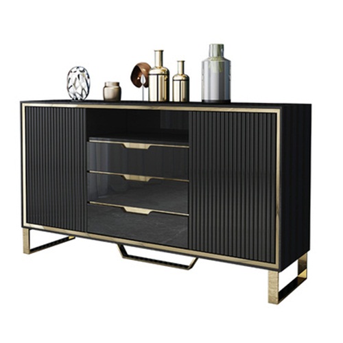 3、備餐柜左右兩邊及上部抽屜和柜門結合的封閉式空間搭配中間可上下調(diào)節(jié)的酒格設計別出心裁,增大儲物空間的同時更方便您陳列各式美酒;四個支撐腳設計,使備餐柜結構更加穩(wěn)固。