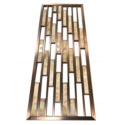 會所新中式玫瑰金鏤空花格屏風造型中式花格造型居多,它主要由不銹鋼空心管經氬弧焊接,打磨,拉絲,拋光和電鍍制成。線條簡單,但表達了深遠的意境,簡單的格子被用來傳達優(yōu)雅的魅力。沉淀數千年歷史的東方生活美學在當今時代并沒有逐漸消失。然而,憑借其簡單而輕巧的設計而又不失去其內涵,它在歷史的腳步中站穩(wěn)了腳跟。到目前為止,新型的中國不銹鋼格子屏風仍然散發(fā)出永不落伍的魅力。新型中式不銹鋼屏風是用不銹鋼原料制成的。薄鍍層工藝不會掩蓋原始的不銹鋼金屬感,隱隱約約的金屬光澤以及現代有機板,它是現代科學技術進步和新型建筑材料的重要體現。