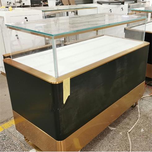 片尺寸價(jià)格說明定做服務(wù)。該款展柜為不銹鋼框架結(jié)構(gòu)和木結(jié)構(gòu)相組合,金色部分為拉絲不銹鋼經(jīng)刨槽折彎、無縫焊接和電鍍無指紋處理等多道工序精制而成,黑色部分為麻面黑色啞光烤漆飾面。