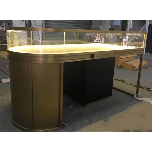 不銹鋼展柜設(shè)計定做廠家為您展示的是2020新款玉器高檔不銹鋼展示柜_半橢圓珠寶展示柜