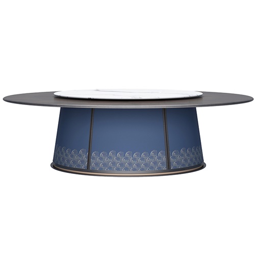 是由天然原料經(jīng)過特殊工藝,借助萬噸以上壓機(jī)壓制(超過15000噸),結(jié)合先進(jìn)的生產(chǎn)技術(shù),經(jīng)過1200℃以上高溫?zé)贫?,能夠?jīng)得起切割、鉆孔、打磨等加工過程的超大規(guī)格新型瓷質(zhì)材料。餐桌面或者是轉(zhuǎn)盤面采用巖板設(shè)計(jì),具有輕、耐磨、無滲透等優(yōu)點(diǎn)。
