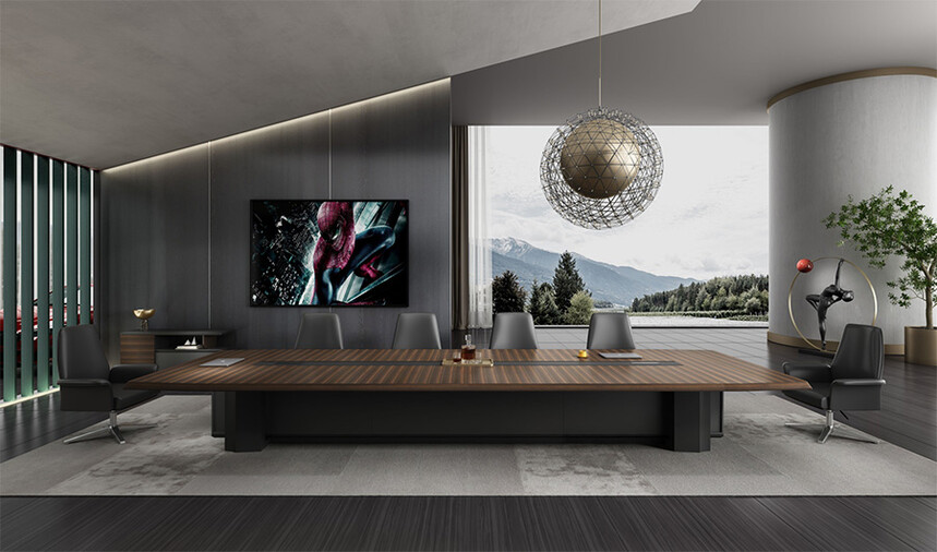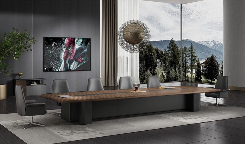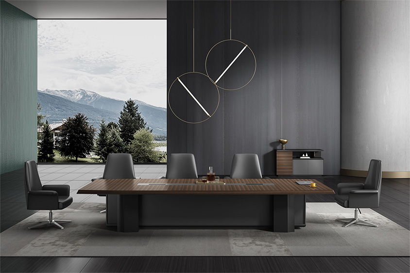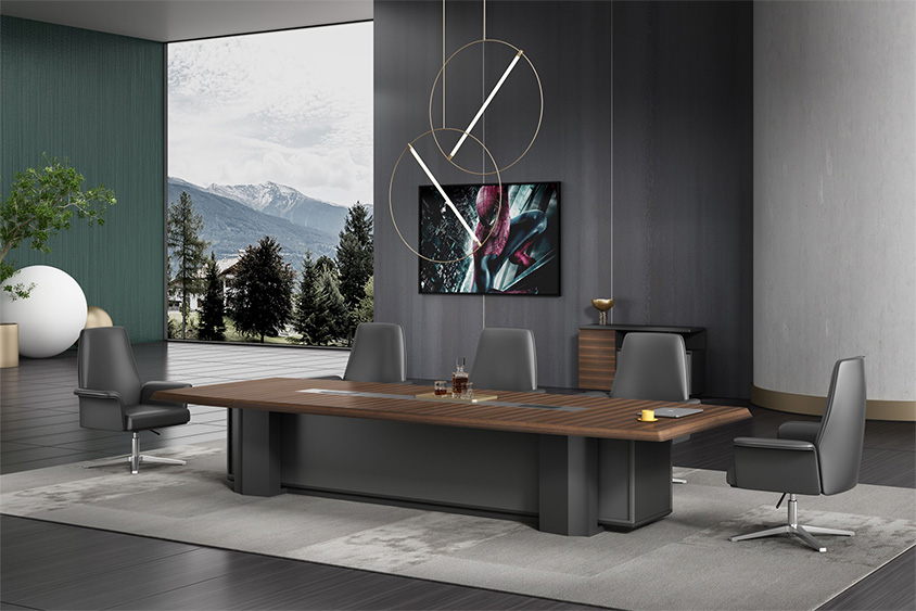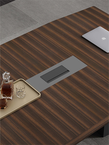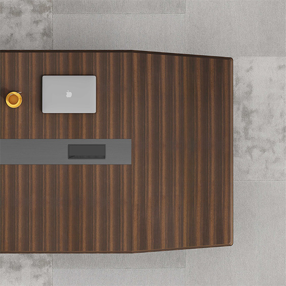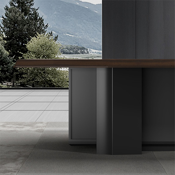 浩韻系列 深邃神秘,時(shí)尚富有魅力。態(tài)勢(shì)沉穩(wěn)又不失靈動(dòng),富有個(gè)性而不張揚(yáng)。設(shè)計(jì)靈感源于建筑的傾斜式支撐給人帶來的沖擊感。不同材質(zhì)的相互碰撞,實(shí)木結(jié)合金屬嵌件,充滿現(xiàn)代氣息。在現(xiàn)有的辦公功能上結(jié)合隱藏的電動(dòng)升降臺(tái),將科技與美學(xué)完美結(jié)合,打造時(shí)尚簡(jiǎn)潔的現(xiàn)代化辦公空間。