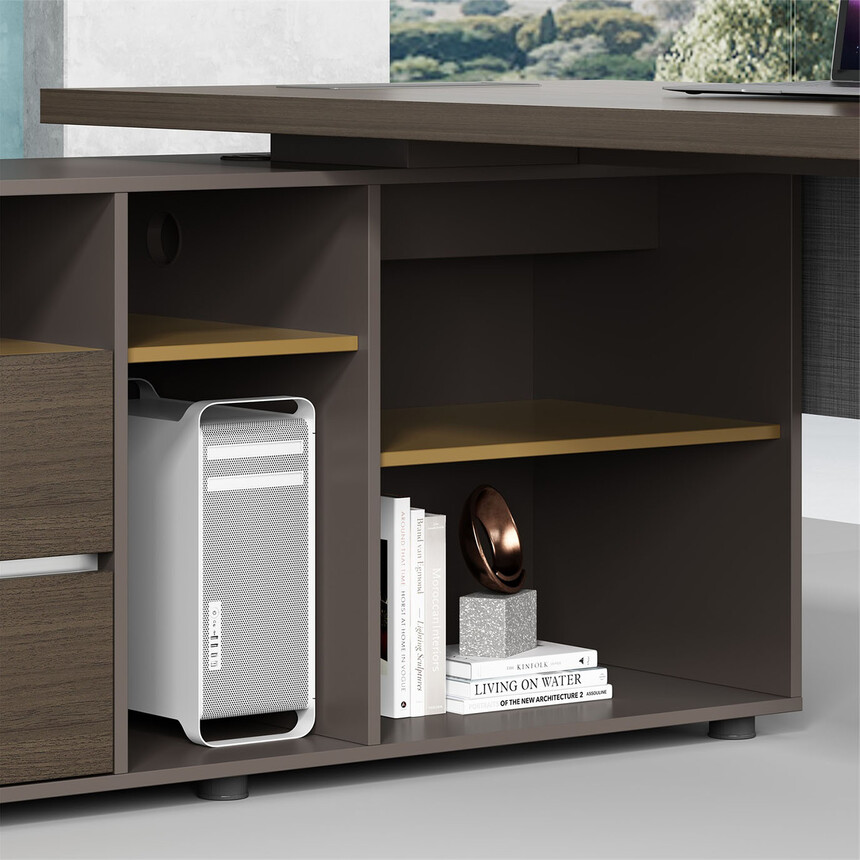領御系列以大膽的跳躍配色與簡潔的直線條設計,將產品魅力展示的淋漓盡致。在一貫沉穩(wěn)的深色辦公配色中,大膽運用白色、黃色的亮色搭配,打破產品配色原有的嚴肅氛圍,賦予產品生命力。擋板處的柵條與切角,獨特的職員臺腳設計,無不展示出領御系列的細節(jié)之美。系列配置齊全,設計時尚,適合各種規(guī)模的辦公場所。