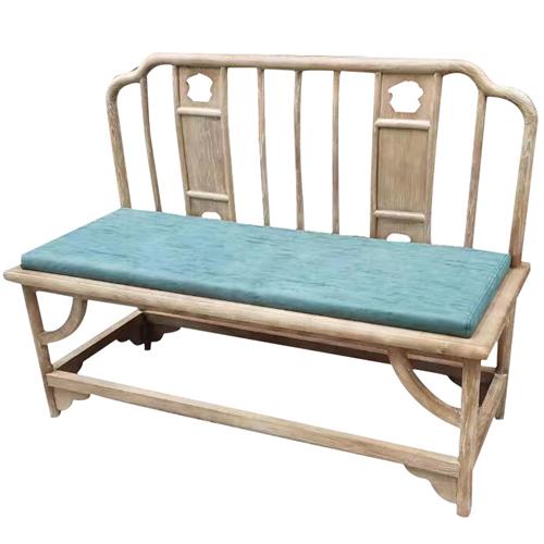 茶樓酒店榆木皮藝軟包雙人椅休息椅圖