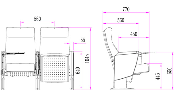 2.座椅基本中心距為560±5mm,座包打開側(cè)深760±5mm,基本椅高為1025±5mm,最小排距:950mm。