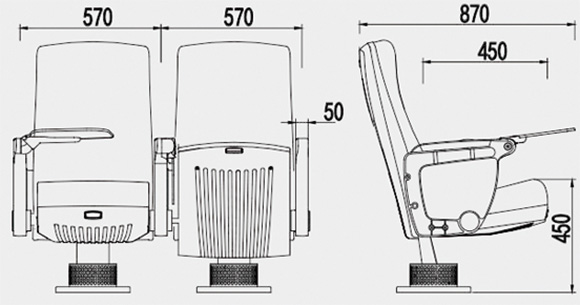 | 座椅深度:880±10mm,扶手高664±10mm:最小排距:900mm。 |