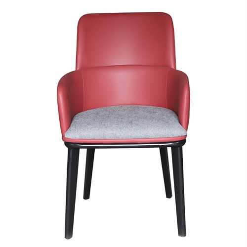 餐廳家具廠家為您展示咖啡廳現(xiàn)代簡約紅色皮革實木扶手餐椅